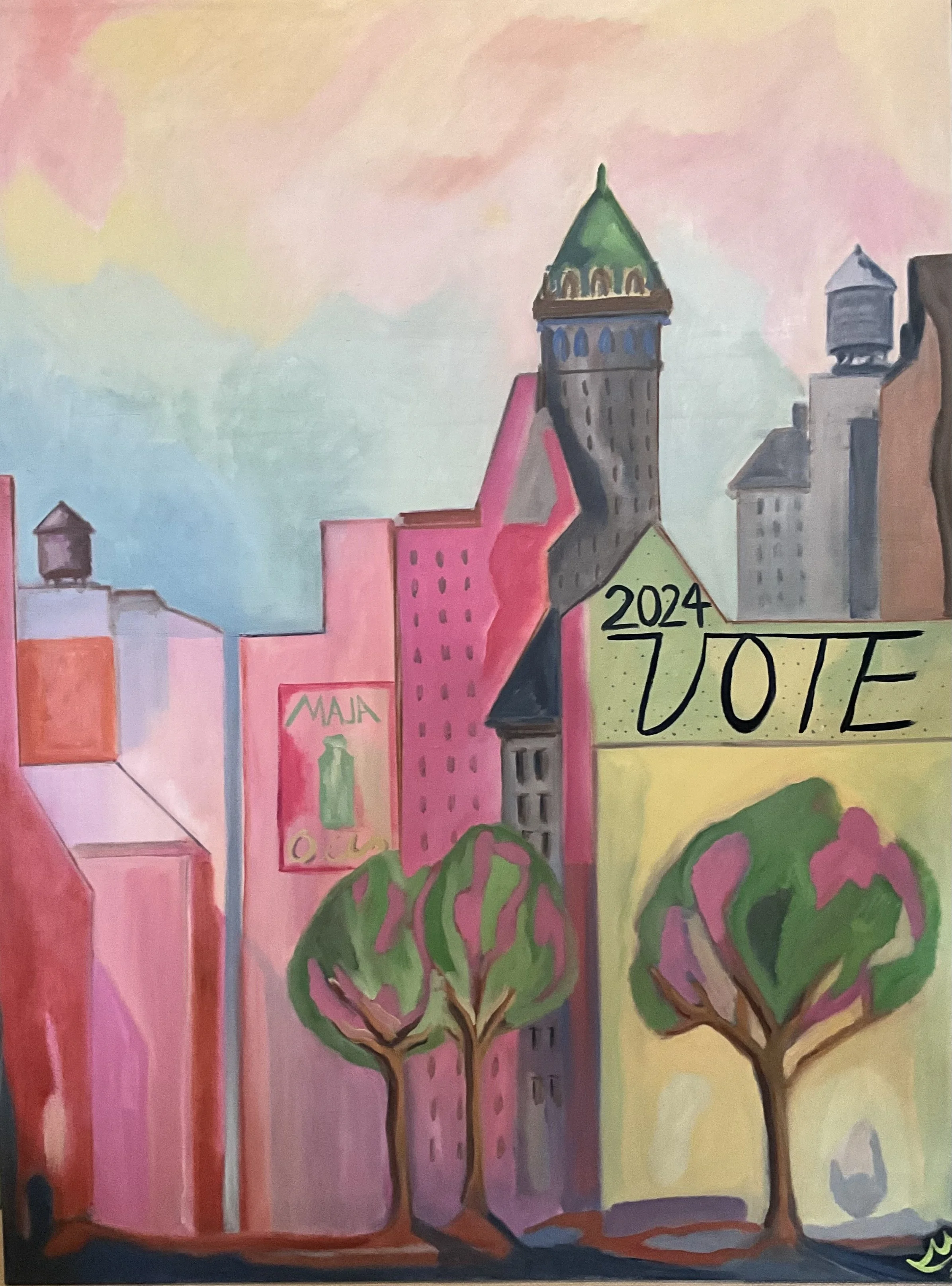 BK In the fall of 2023, we moved to Brooklyn, NY. Living in a bustling city, wherever I walk, there is inspiration. I paint the colors, the design, the architecture, all inspired by the changing seasons. 2023-2025
